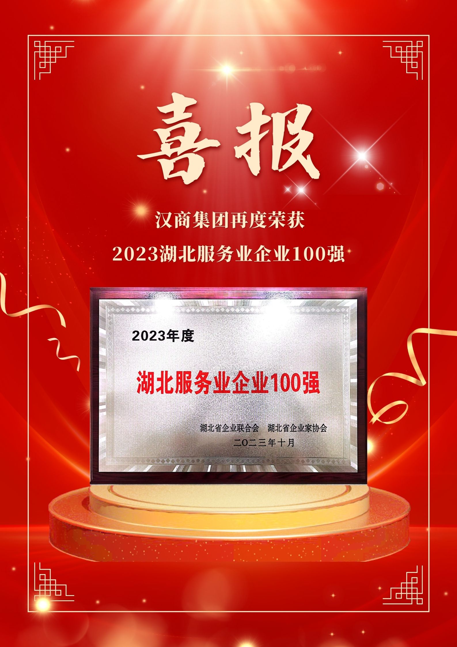 11月1日,湖北省企业联合会、湖北省企业家协会发布2023湖北企业100强、湖北制造业企业100强、湖北服务业企业100强榜单。汉商集团再次蝉联2023湖北服务业企业100强。